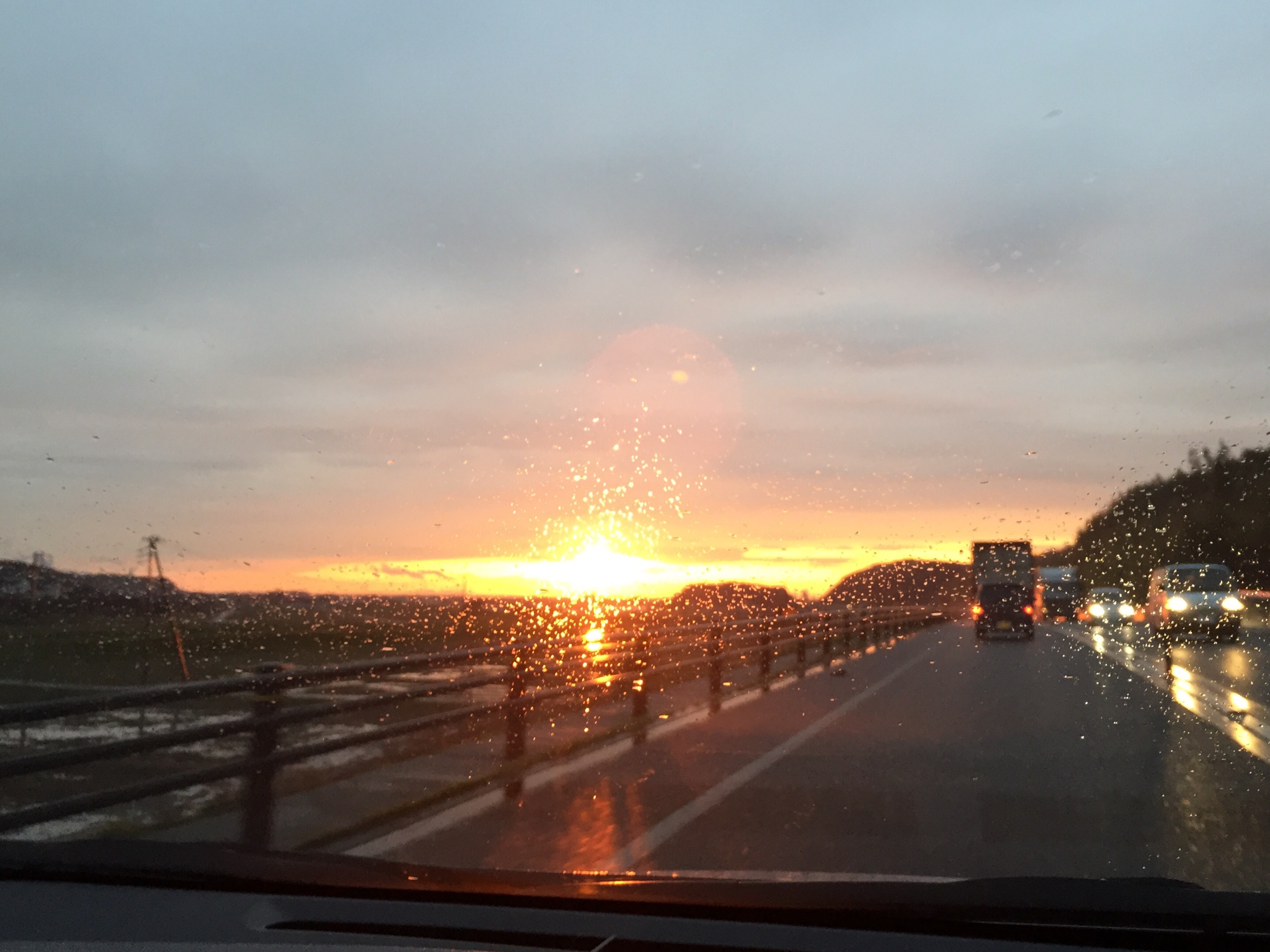 あいにくの雨でしたが、雨で浄化されたあとの帰り道では綺麗な夕日を見ることができましたよ。